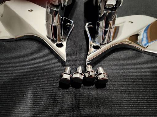 Sprzedam komplet chromowanych blach z podnóżkami pasażera + 4 chromowane śruby montażowe.